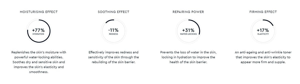 - Balanced, replenished with visible supple skin - With a rich texture that is fast absorbing and a formula that is non-sticky, the 30-Second Miracle Toner is ideal to soothe sensitive skin and reduce the development of acne. Its formula retains firmness and protects the skin from loss of elasticity. By supporting the skin barrier’s health as well as maintaining and preventing loss of moisture in the epidermis, skin is left appearing lustrous and hydrated.